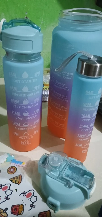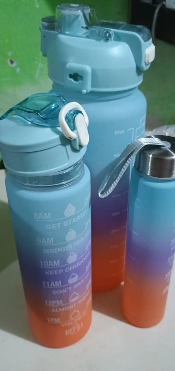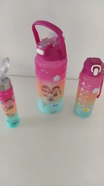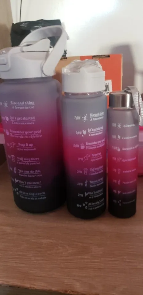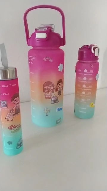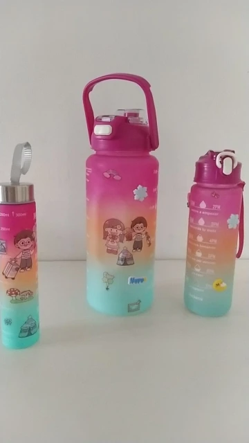Essas garrafas são mais do que recipientes – são companheiras em cada passo da sua jornada diária. Desde o início do seu dia até os momentos finais, o kit oferece tamanhos e cores vibrantes que o acompanham em cada momento, seja na academia, no trabalho, ou até mesmo em uma caminhada ao ar livre. Cada garrafa contém marcas de consumo de água e frases motivacionais, transformando o simples ato de beber água em um hábito prazeroso e consciente.